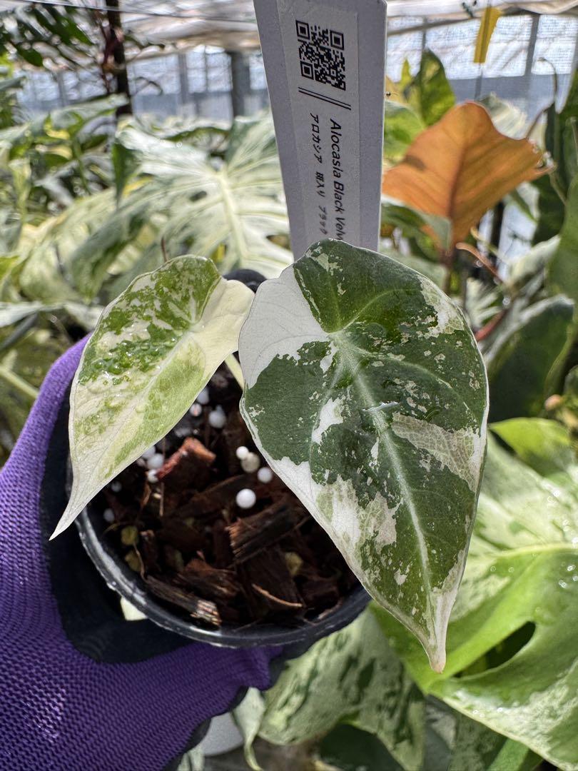 アロカシア ブラックベルベット ピンク 斑入り 2号【漆黒の葉に映える幻想的なピンク斑】
