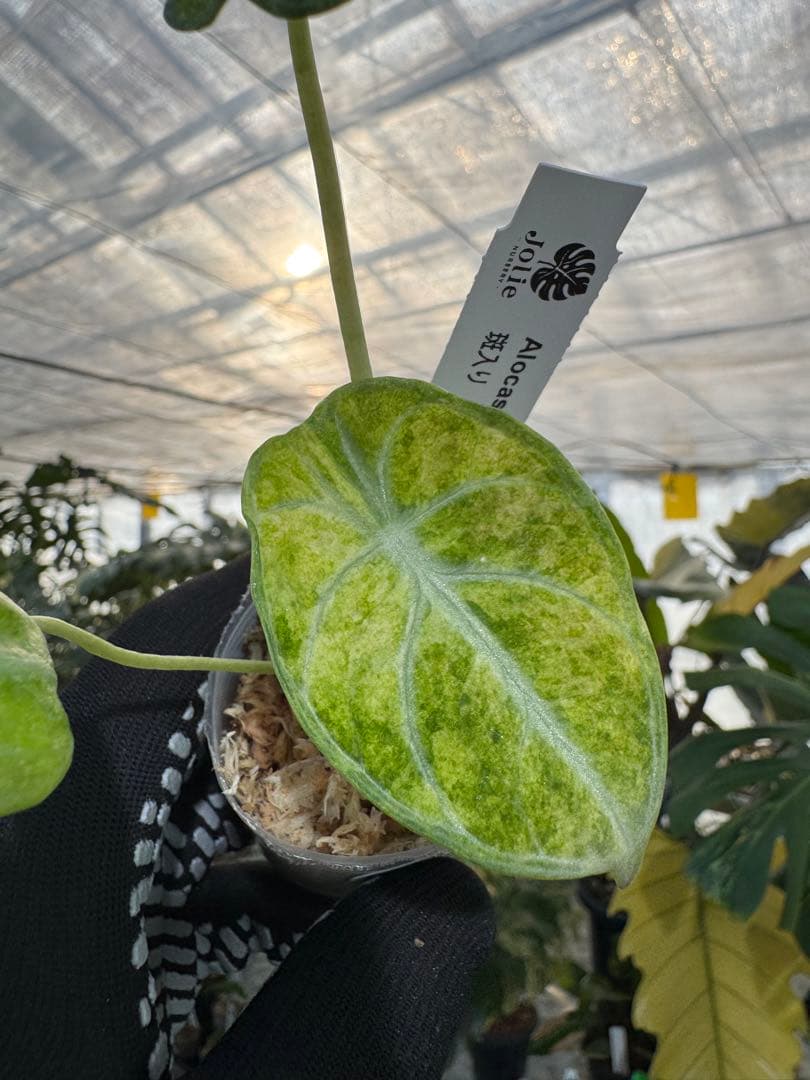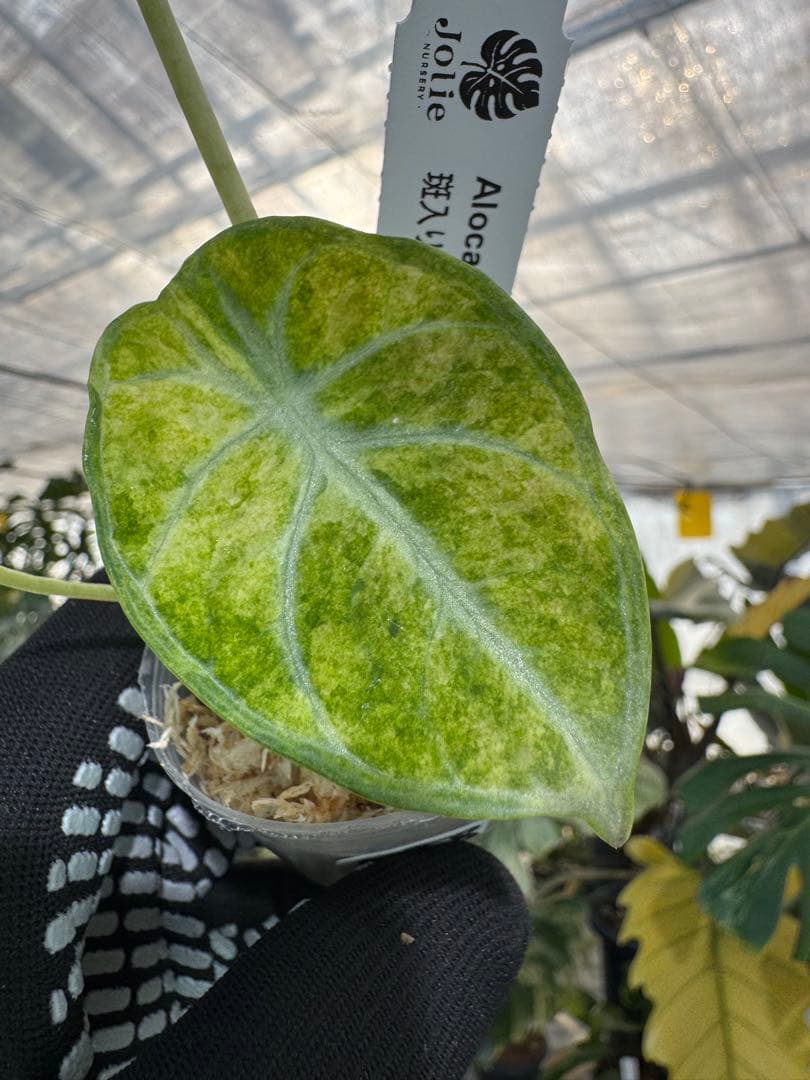 葉の中央から広がる太く鮮明な脈と、不規則に広がる斑のコントラストは、ジュエル・アロカシア愛好家にとって究極のコレクションと言えるでしょう。