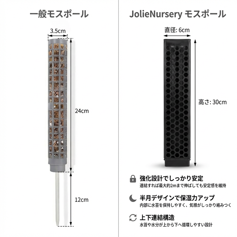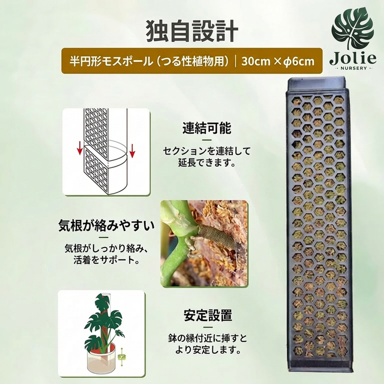 Jolie 半月型モスポール 連結式モンステラ支柱 成長促進