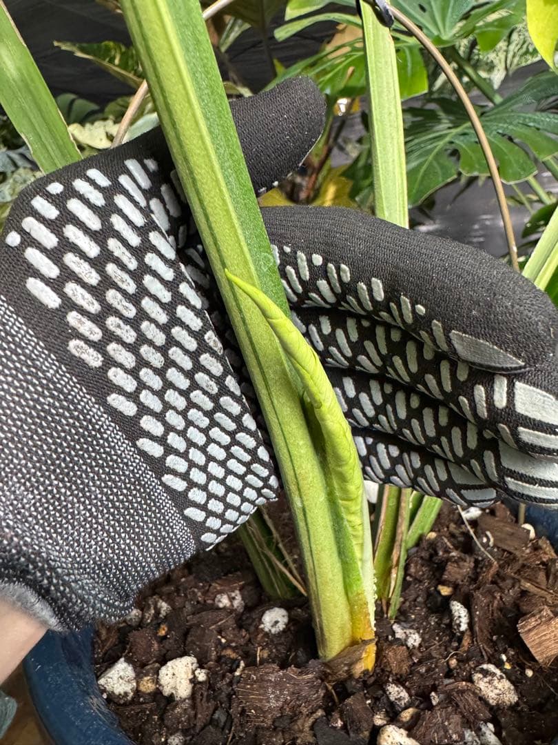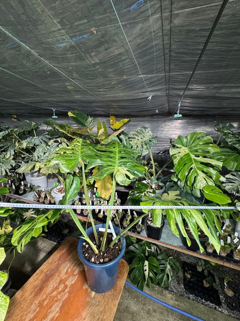 - 仕立て:垂直に誘引することで葉がより大きく成長し、特徴的な切れ込みとミント斑がさらに際立ちます。ぜひ「連結式モスポール」を併用しての育成を推奨します。