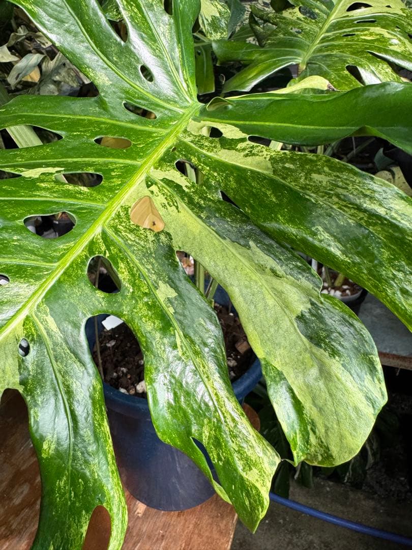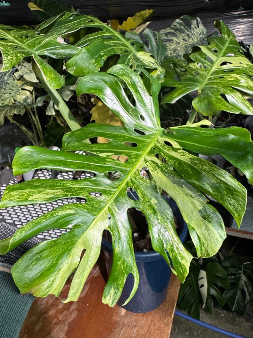マスターピースの名に恥じない、安定した斑の入りやすさも魅力の一つ。新葉が展開するたびに、期待を裏切らない極上の斑入り姿を見せてくれます。 -