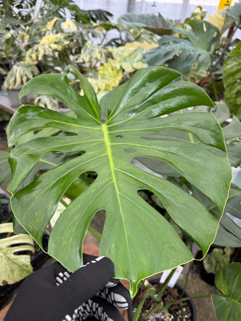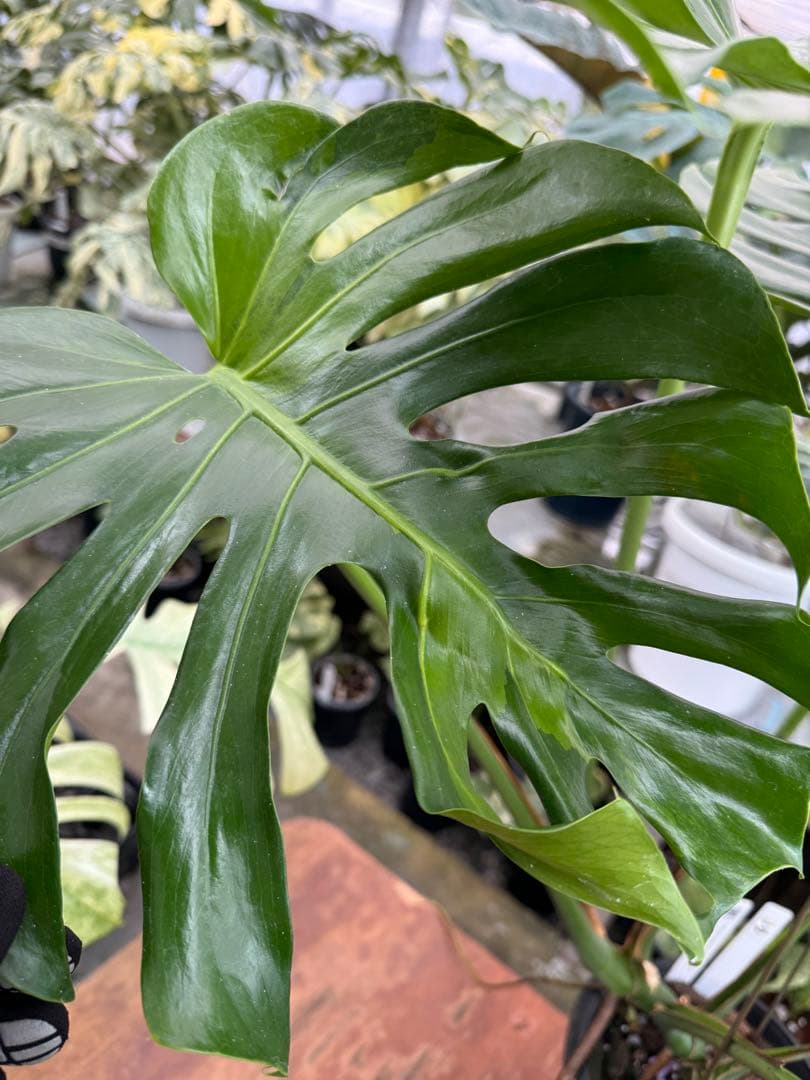 - 「デリシオーサ」系の特徴: 多くの場合、モンステラ・デリシオーサの特性を受け継いでおり、成熟するにつれてモンステラ特有の葉の切れ込み(窓)が形成されます。この切れ込みと、グリーンオングリーンの斑の組み合わせが、非常に芸術的な葉の表情を生み出します。