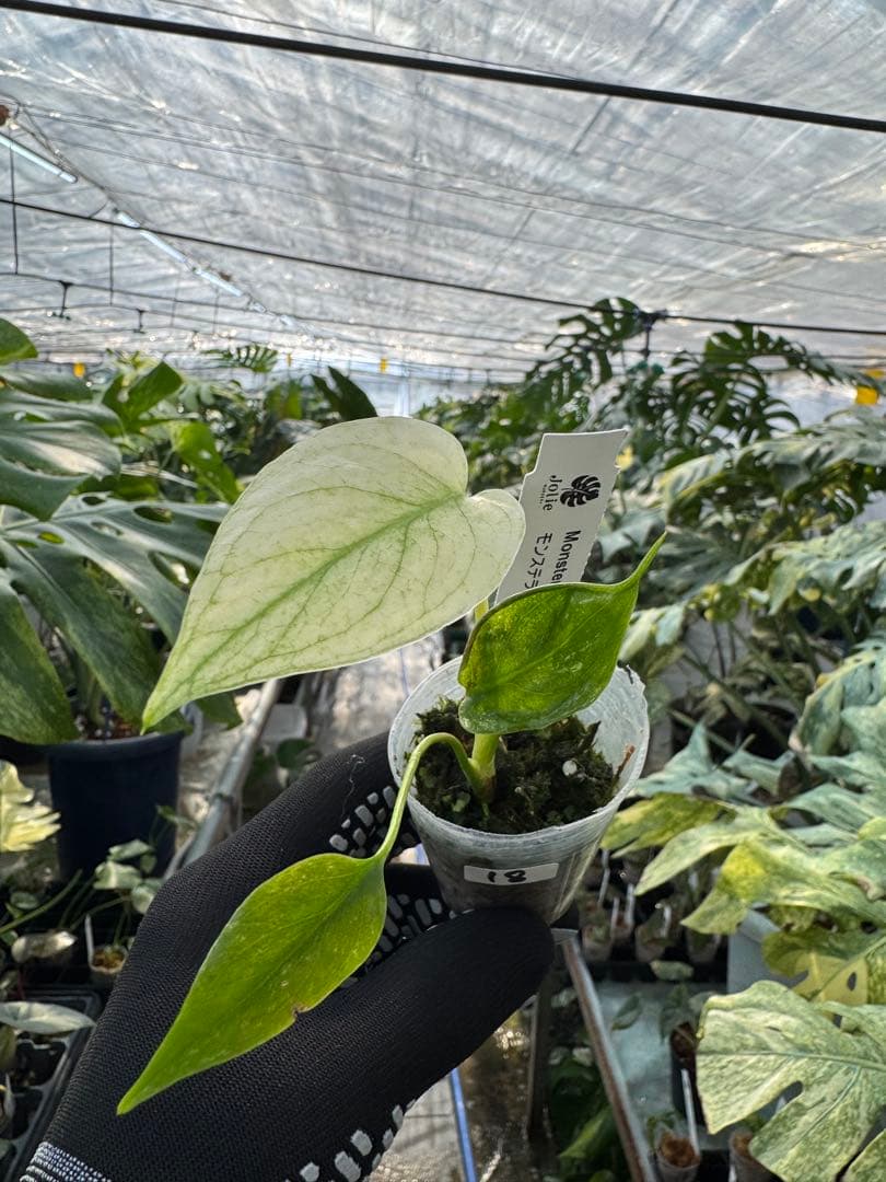 ボルギシアナ種よりも葉が厚く、節間が詰まって育つデリシオーサ。将来的に巨大化し、幾重にも重なる切れ込みや窓(穴)が開いた姿は、圧巻の迫力となります。 -