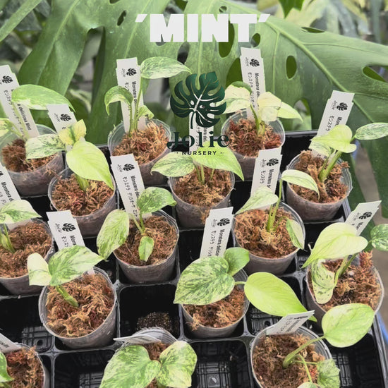 Jolie Nurseryでは、このミント斑の中でも、特に模様の入り方が安定し、将来が楽しみな健康個体を厳選して2号サイズでお届けします。