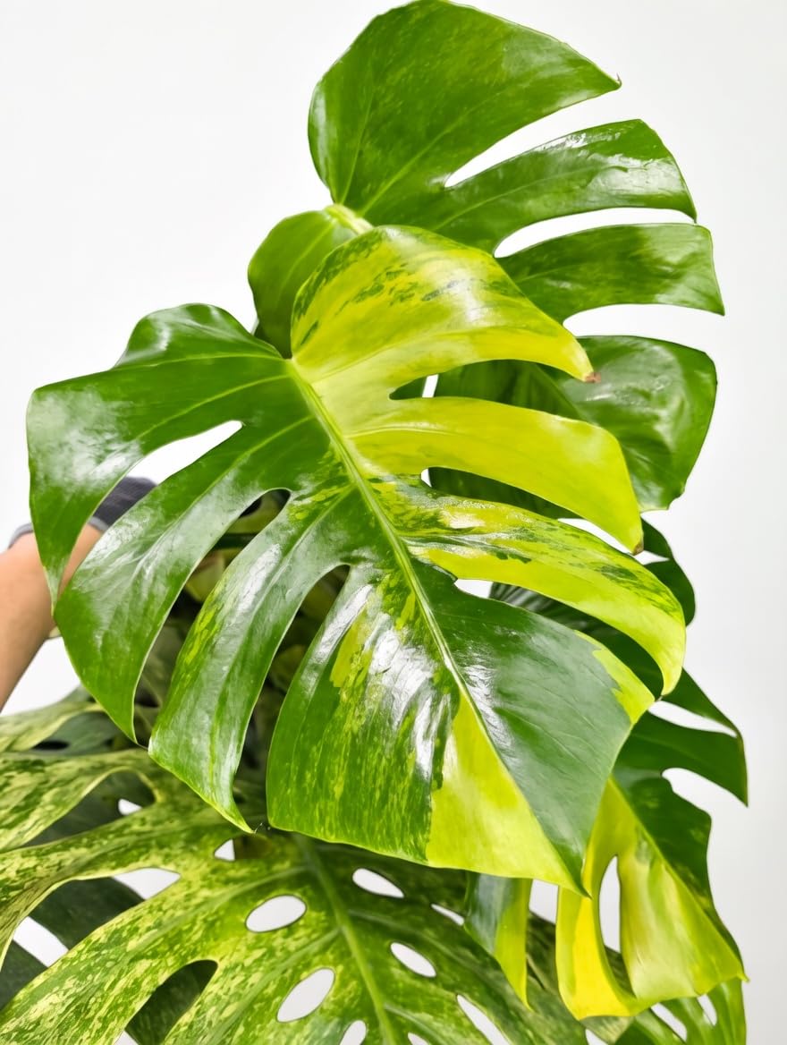 モンステラ・ボルギシアナの中でも、鮮烈なイエローの斑が入る非常に希少価値の高い「オーレア(黄斑入り)」のカット苗です。 ホワイト系の斑入り(アルボ)に比べ、黄色い斑はより華やかで温かみがあり、お部屋を一気に明るくエキゾチックな空間へと変えてくれます。